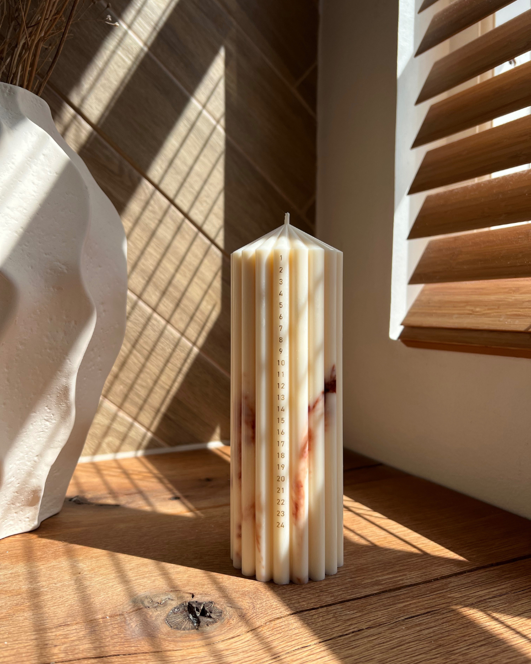 Lyset måler 20 x 7 cm og har en brændetid på 90 timer.