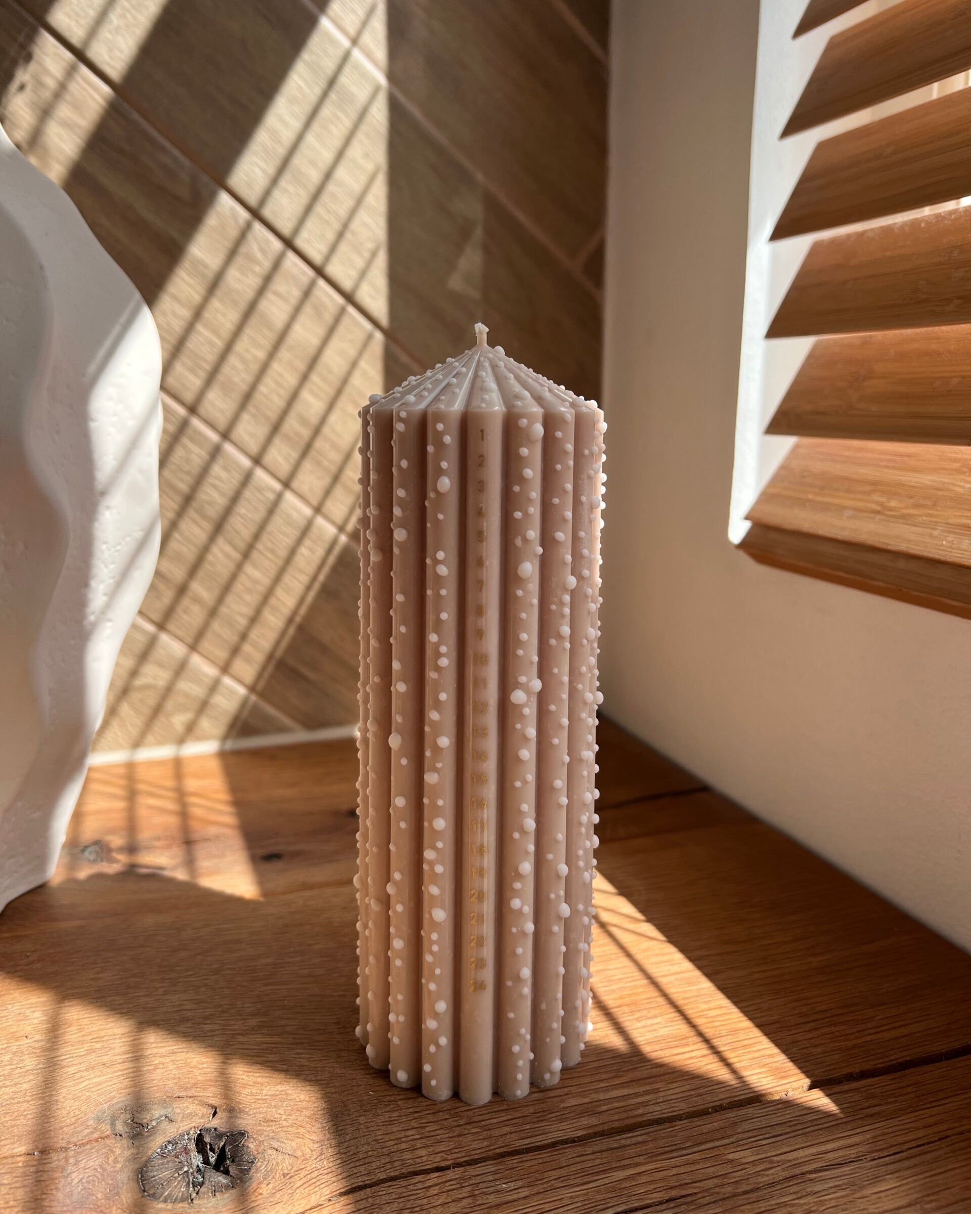 Lyset måler 20 x 7 cm og har en brændetid på 90 timer.